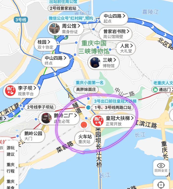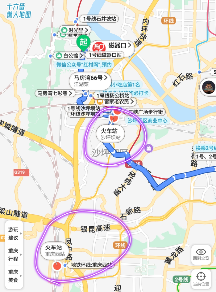 (下面截图来自:十六番旅行-重庆-懒人地图-重庆行程地图)
