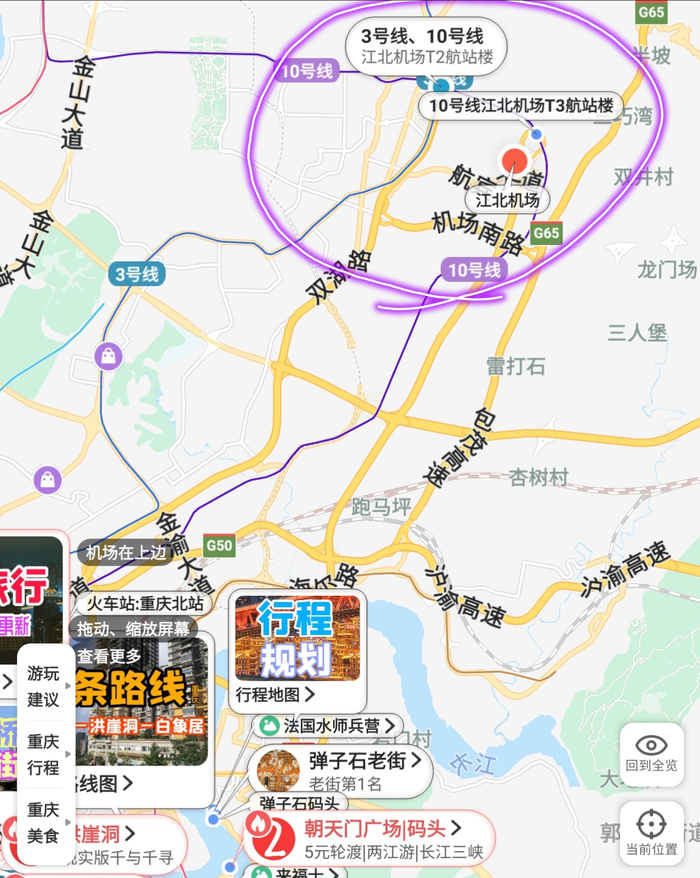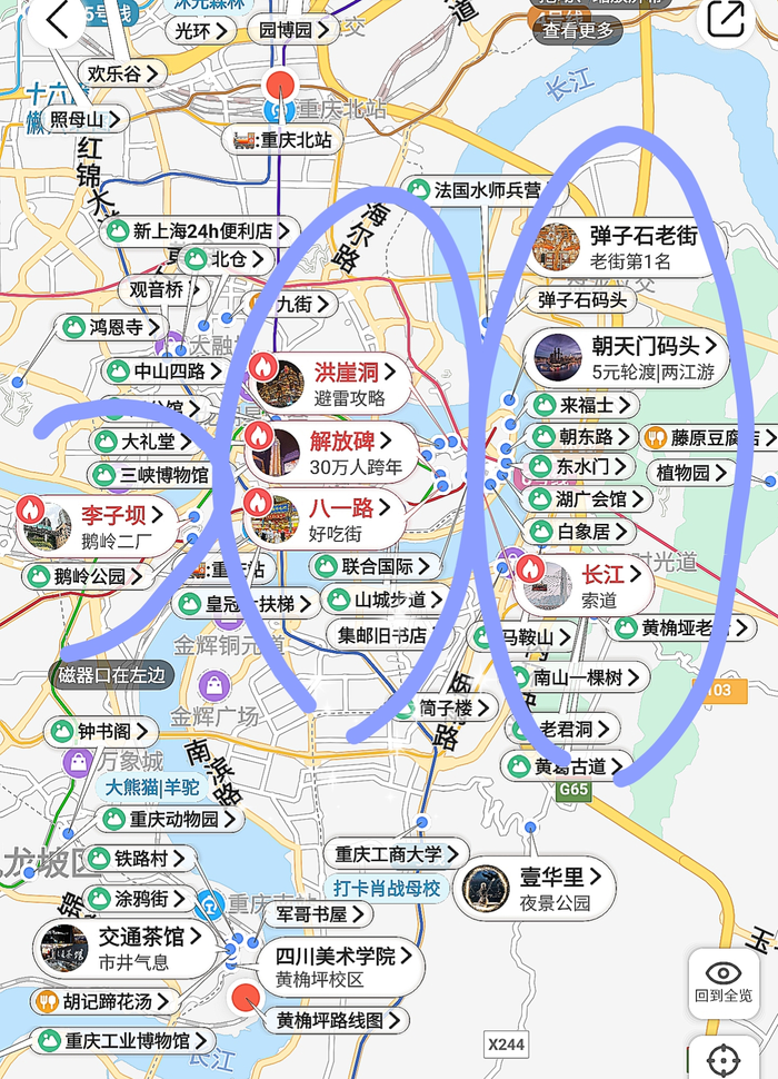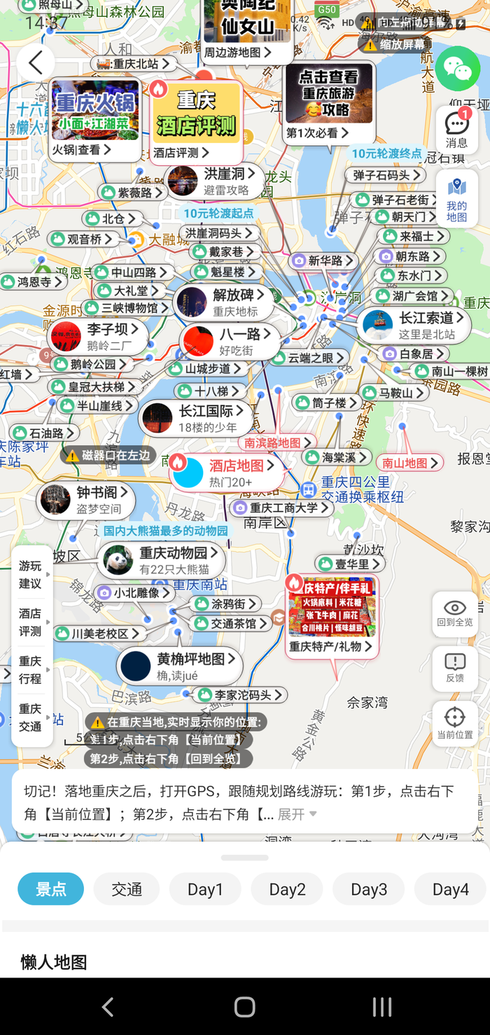 (如下图,截图来自十六番旅行-重庆-懒人地图-重庆行程地图)