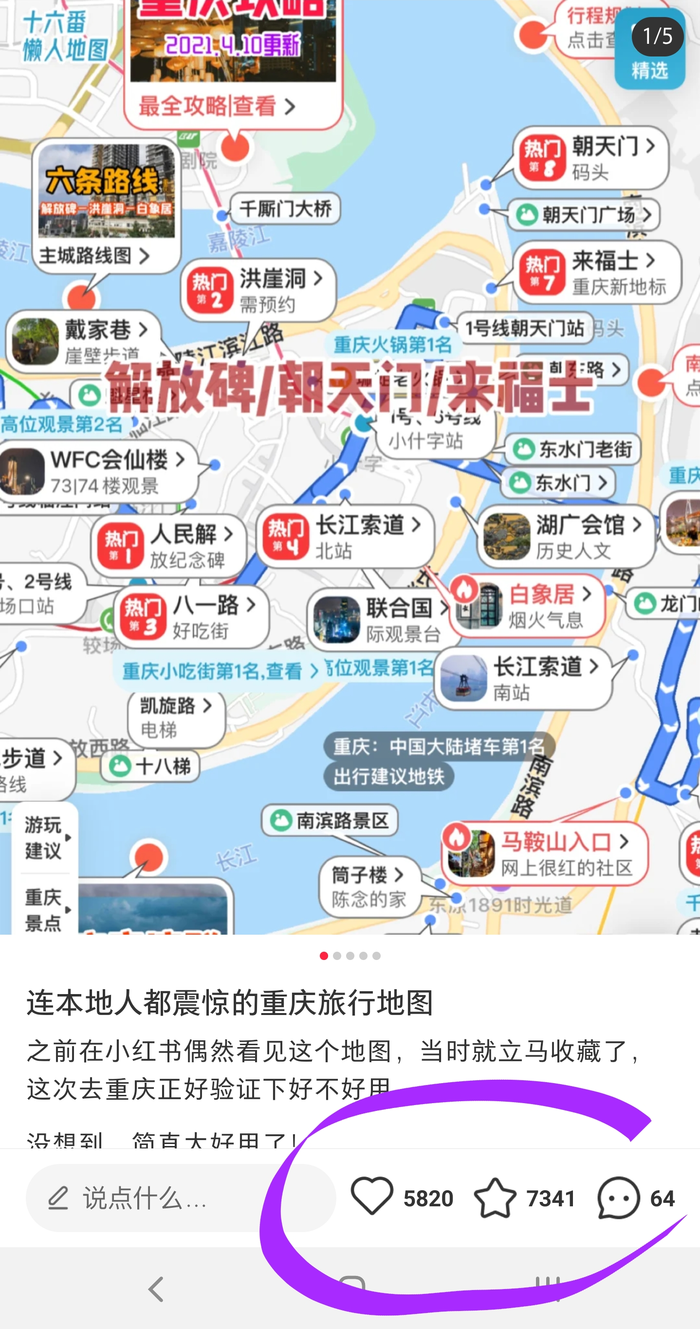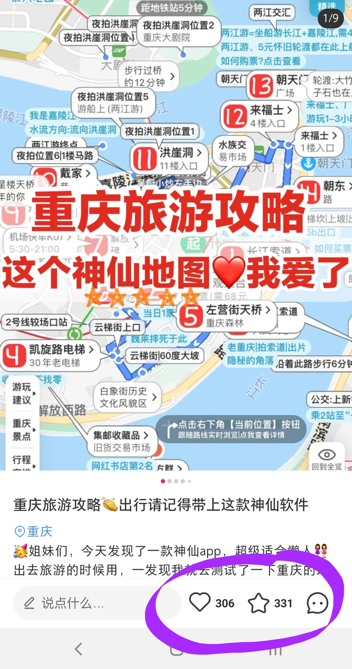 在小红色发布旅行笔记,将懒人地图截图,经过处理之后,放在图1位置,很容易得到点赞与收藏。