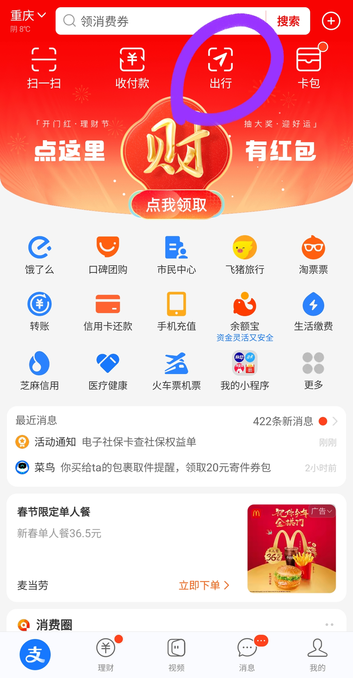 (下图 支付宝: 乘车码入口截图)