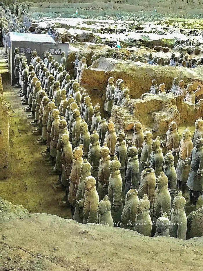 现场的震撼度是照片和想象不到 世界的第八奇迹 千人千面的精工雕刻 据说 秦始皇陵总占地56平方公里 兵马俑才占总面积的万分之三 在陵墓最前方 视为守护者 此生呀 一定一定要去一次 感受老祖宗留下的文化和精华