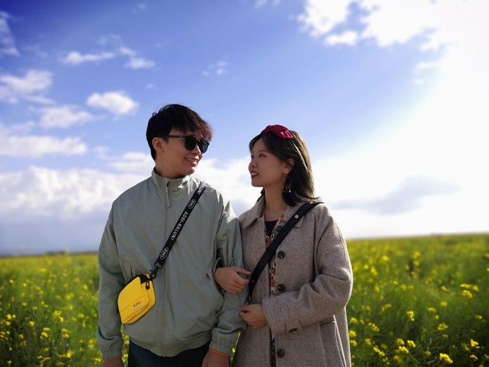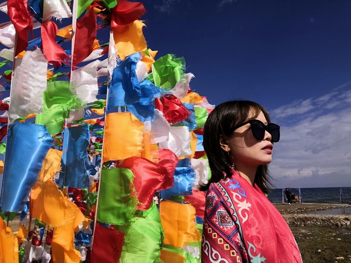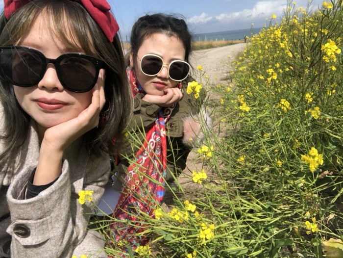 我们放弃了二郎剑景区,去到了青海湖边当地村民弄得小路,一个人10块钱,沿着一片油菜花一直往里走就能到达湖边。到湖边的路得走个20分钟,我们拖拖拉拉拍照愣是走了半个多小时