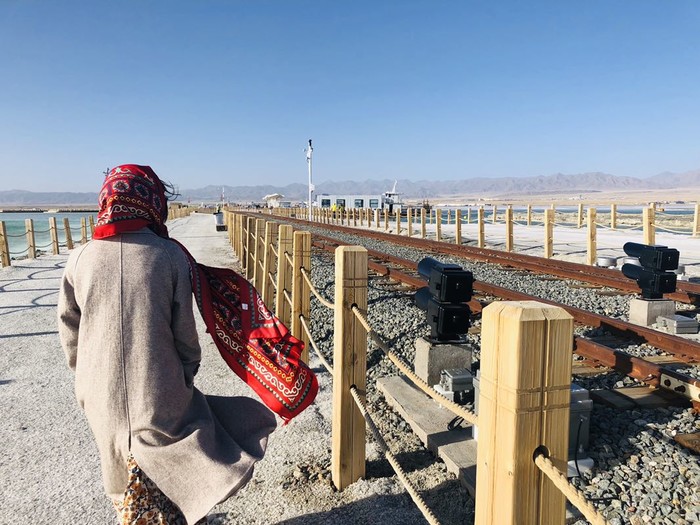 吃完到茶卡盐湖已经4点多了,大西北的天要到7点半才渐渐暗下来,所以我们有足够的时间游玩~一下车的第一感觉是风也太大了吧!整个要被吹走!门口有售票的,门票60,小火车单程50,进去的火车中间不停直接到最里面。
