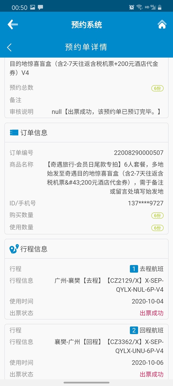 多得D君的推荐,成功抢购了南航盲盒,特意等最后一期,国庆可用,成功抢购了广州往返襄樊国庆出行机票,一行六人,人均300,再加襄樊属于湖北,景点全免门票,国庆出行人均500,食饱玩好。太爽了。求进群继续关注低价出行。