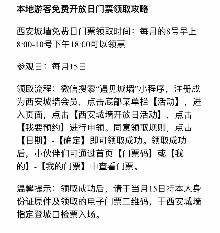 其中南门是西安城的迎宾门,也是游客选择最多登城的一个门。目前西安城墙和西安碑林博物馆发售联合套票,游客购买套票后,可以游玩以上两个景点,套票¥100/人;