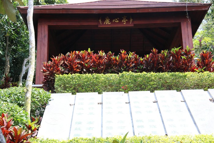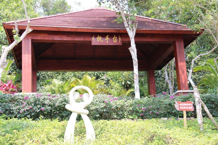 在海誓山盟北纬18度石前拍照后,然后去看四湾八景,中间会经过九曲桥-来仪台-舞凤台-望鹿台-百鸟朝凤雕塑-朱雀台 这个景区确实很美