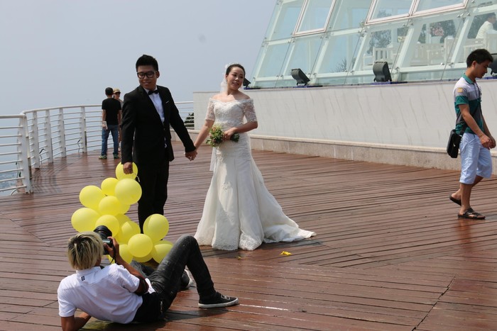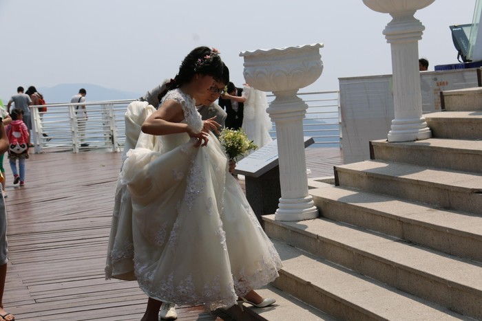 通过这个花式长廊,便可以到水晶教堂了,拍婚纱照的好多。