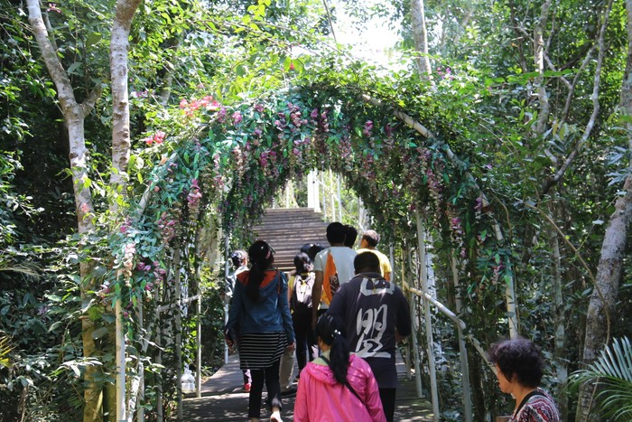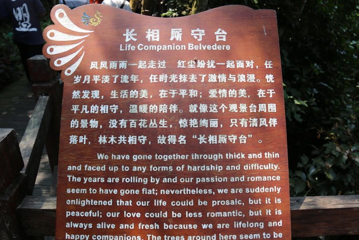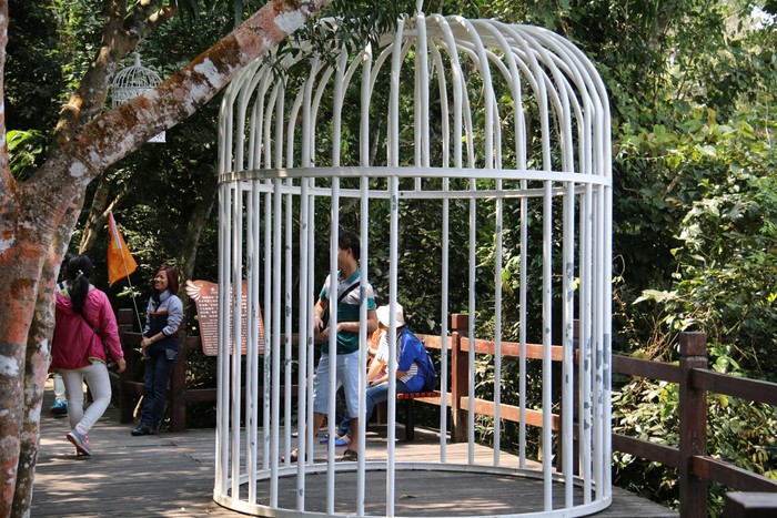 整个景区是呈“8”的形状,所以在林荫栈道里,跟随一个个微景观,不知不觉就到坐索道的出口了!