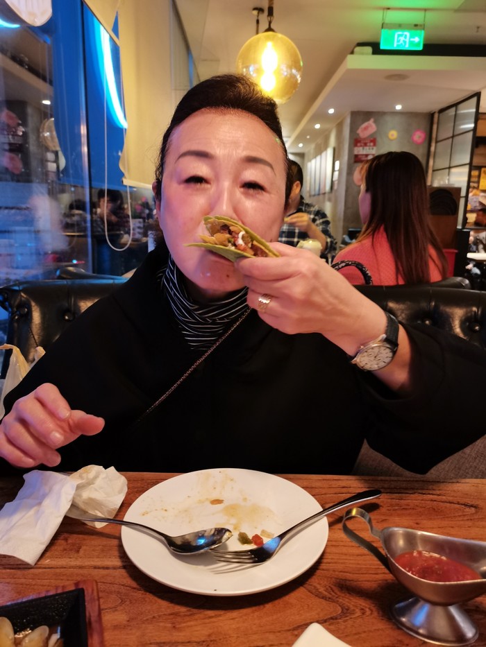 晚饭在金鹰商场吃的【塔可】。点的有点多,和老妈一人两个大塔可,吃完再继续溜达吧!