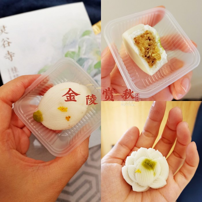 敲重点了!网红灵谷素面就在灵谷寺的【灵谷山房】!可惜我们去晚了,没有尝到(中午11点起售,据说每天只有26碗)。不过,我们吃到了最好吃的桂花糕!灵谷山房的桂花糕作为伴手礼,秒甩各种特产糕点几条街!灵谷山房的桂花糕,味道纯甘、高档精美,能看得出制作者的用心!每盒6块,独立包装,每块造型不同,表达不同的寓意。放在手心,不忍下嘴。