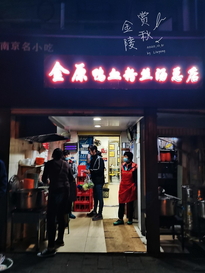 从灵谷寺出来后,打车直奔锁金村,去品尝了攻略里提到的,南京最好喝的鸭血粉丝汤——【金原鸭血粉丝汤】。后来才知道,原来我们住的宾馆门口就有一家他的分店!