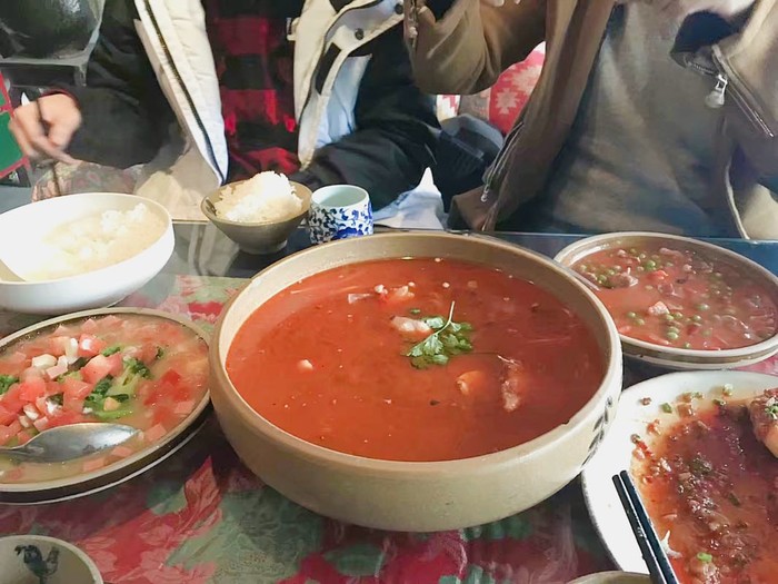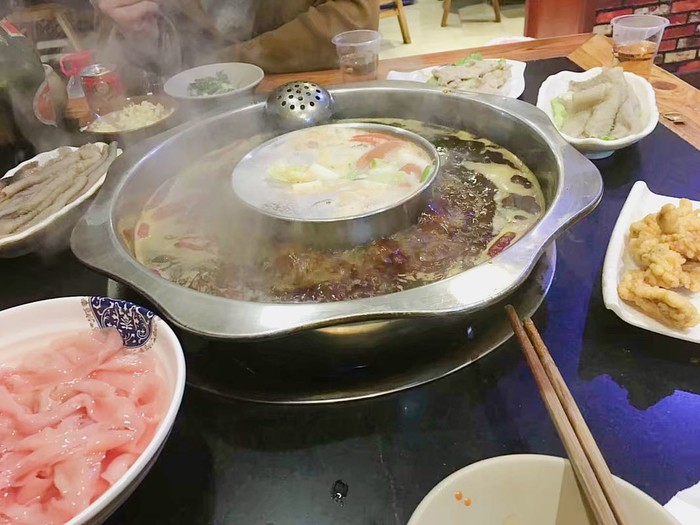 一、《晓宇火锅》我们的第一顿重庆火锅 味道挺正宗的 不错 但是就环境一般 大排档风格的,感觉挺多本地人去吃的,不过别人吃的都是九宫格,我们吃不了太辣的,只能点个鸳鸯锅