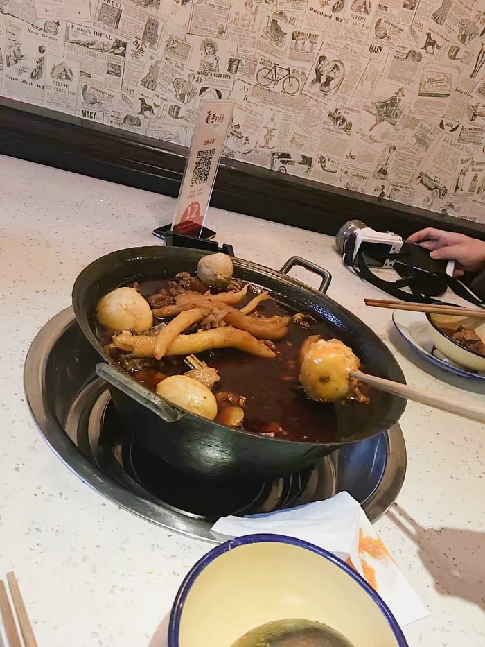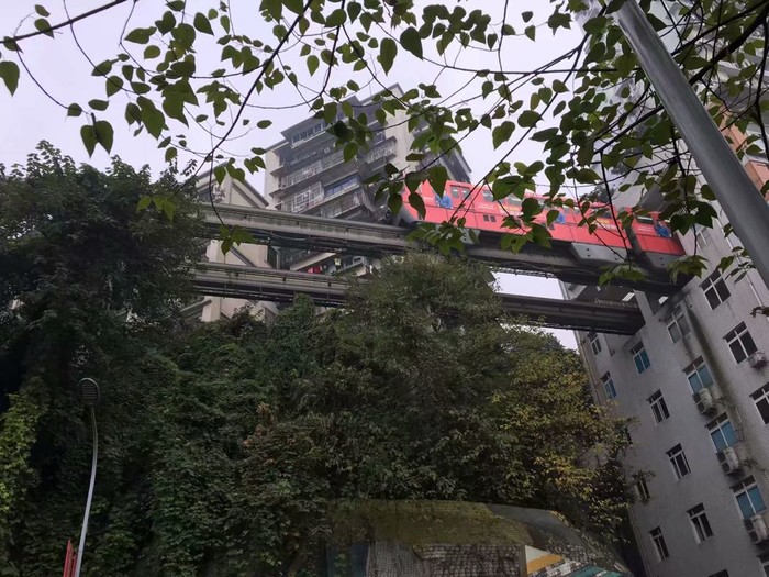 2⃣️坐了穿梭于住宅区之中的城轨 感觉没有想象中的有趣 可能就是宣传得挺到位的罢了 在里面并没有什么新奇的东西可以看见 也没有什么特别的体会。但在城轨那里吃了一个十分有重庆特色的梁山鸡(药材鸡)很好吃,药材味我喜欢,但份量太实诚了,撑死我们四个人了