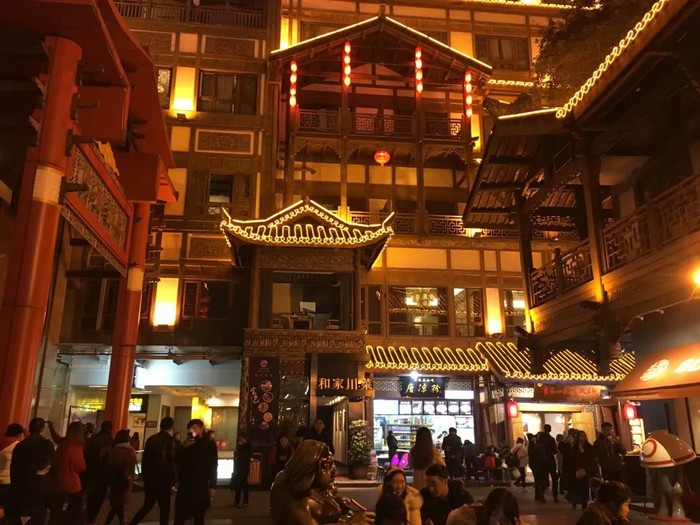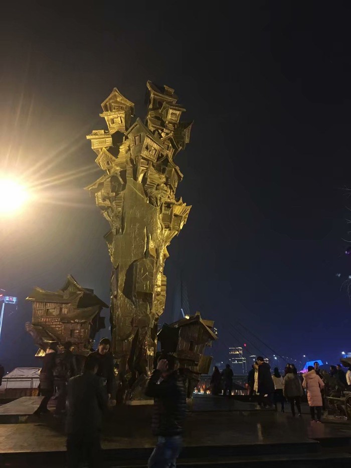 二、1⃣️千与千寻的场景相似地,大家必打卡的地方,感觉确实很漂亮,黄金色的灯光,让人感到灯红酒绿生活美好,除了这里,重庆的建筑设计还特别巧妙 感觉是专门为了旅游文化建设似得