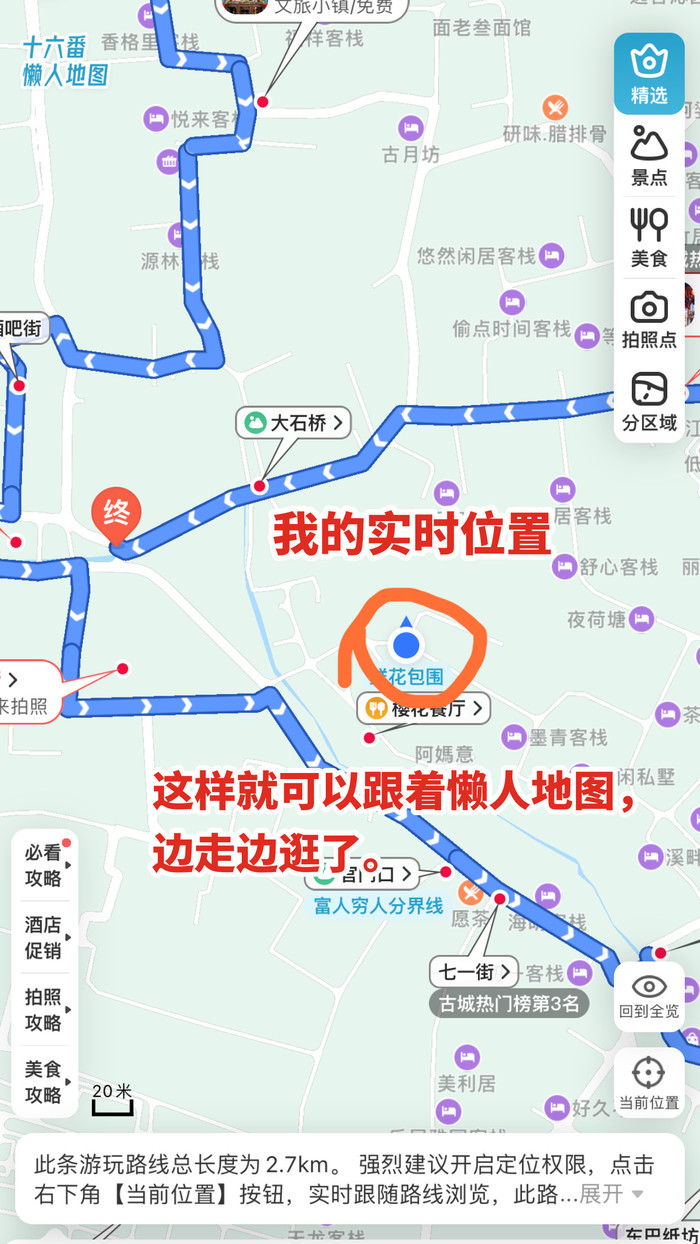 23、住古城要注意,不喜欢嗨的,选民宿一定不要选临街的,不然晚上11 点前都很吵。(懒人地图上主街位置一目了然,参考性很强)