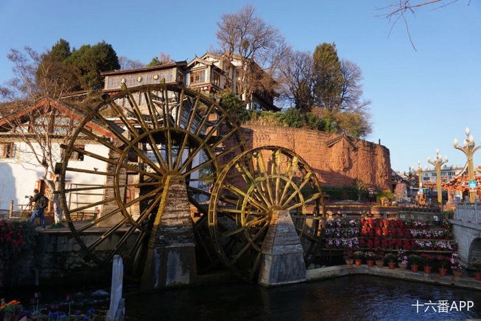 大水车为“丽江古城的标志性建筑”,水车又称孔明车,是我国最古老的农业灌溉工具,也是先人们在征服世界的过程中创造出来的高超劳动技艺,更是珍贵的历史文化遗产。 水车不仅可以用来舂米磨面,如果人住在高处,水往低处流,还可以用它来提水。