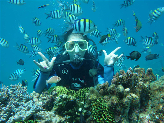 蜈支洲岛,是三亚(甚至国内)水质最好的海岛.有PADI五星潜店.