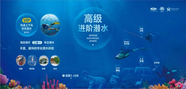 4、项目运用专门的游艇接待,潜水全程由专业PADI OWSI潜水教练一对一带教。项目另增设进口水下推进器、海底漫步、海上垂钓、魔力浮毯等配套游玩项目,人性化服务可允许一带一携带陪同人员上游艇进行海钓。