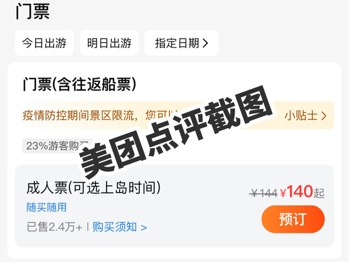只要一上岛,就需要购买景区门门票和船票,岛上所有景点都是免费游览的。网络购买门船票实行实名制预约,预约完成后需携带本人身份证件至游客中心二楼检票登岛,无需换取纸质门船票(凭二维码进入)。