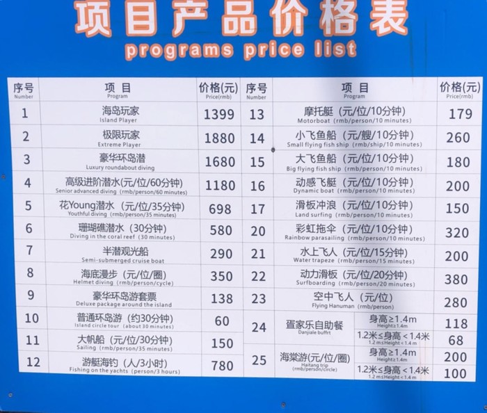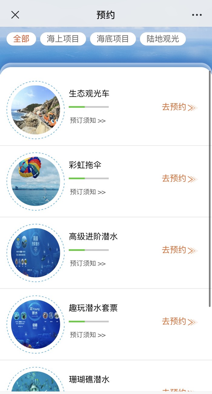 注意:这些娱乐项目可能受天气或人流量影响运营时间,可询问景区工作人员获取一手信息。并推荐关注“蜈支洲旅游”或“蜈支洲岛”官方公众号,上面有所有当前开放的项目信息,建议提前进行预订。目前公众号新开了“排队预约”功能,可预约, 可排队自己所买的娱乐项目,在手机上随时查看时间。