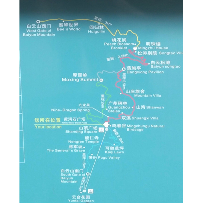 白云山一日游,南门进山,西门下山路线图(下图)