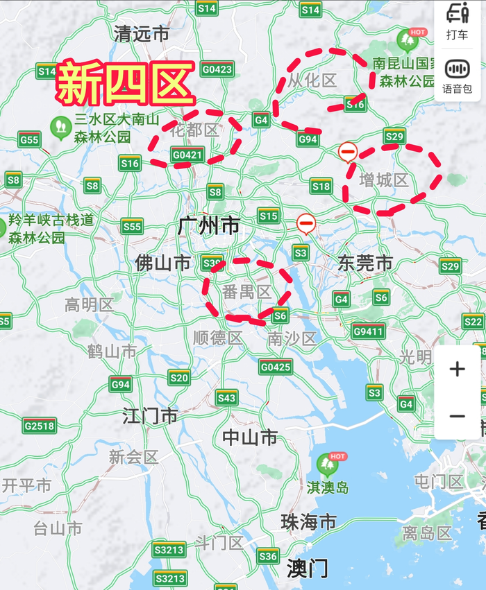 “新四区”: 花都区(白云机场、广州北站)、增城区、从化区、番禺区;