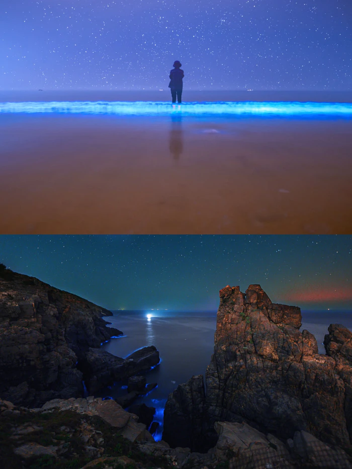 最大的特点“蓝眼泪”,蓝眼泪是指夜间风浪拍打在岸边,不断出现的蓝光,就好像星河坠入了海里,超级梦幻~原理是生物发光(夜光藻),在海浪的刺激下发出蓝光。