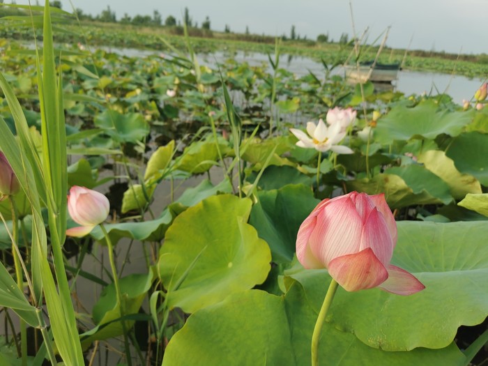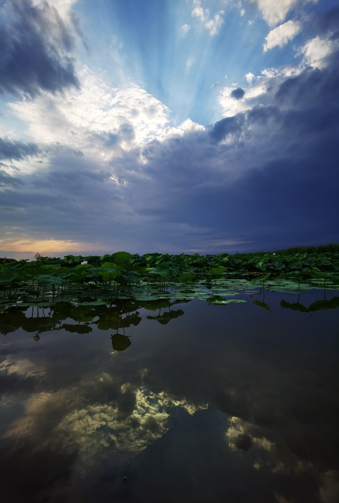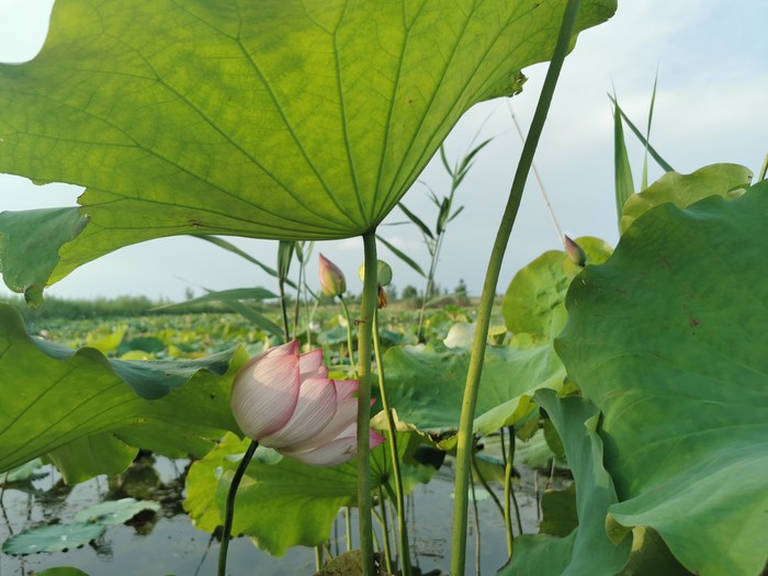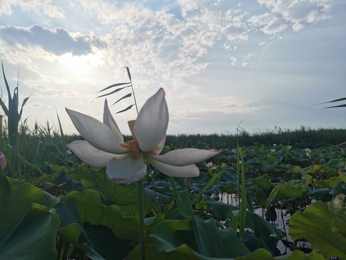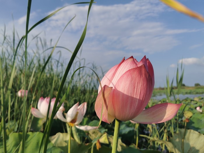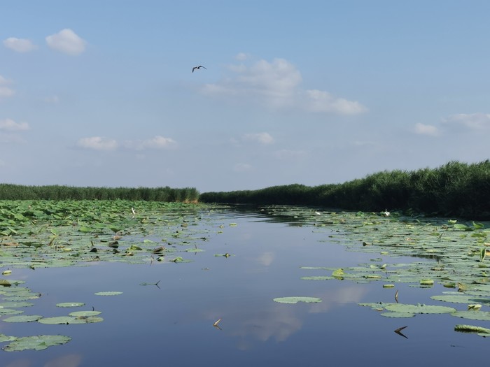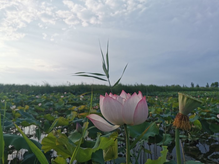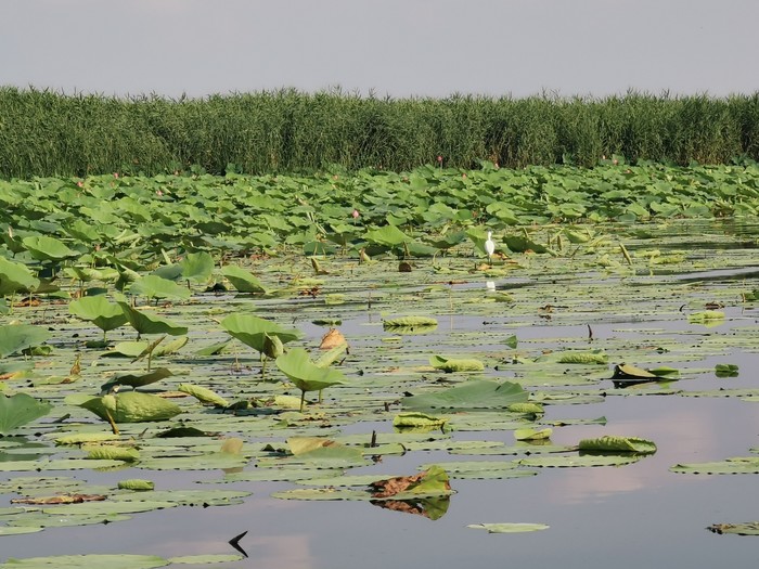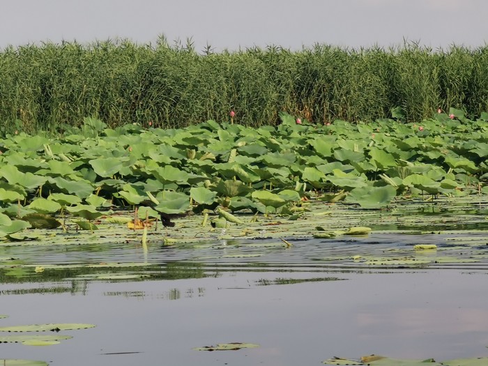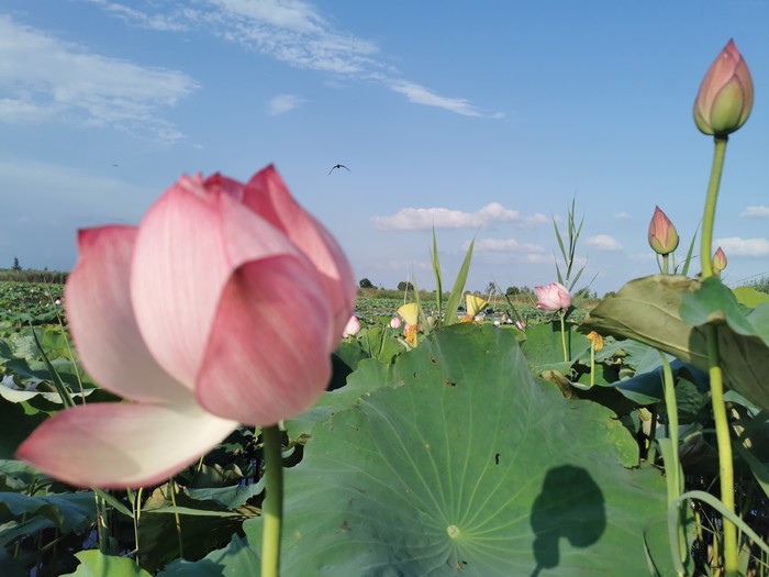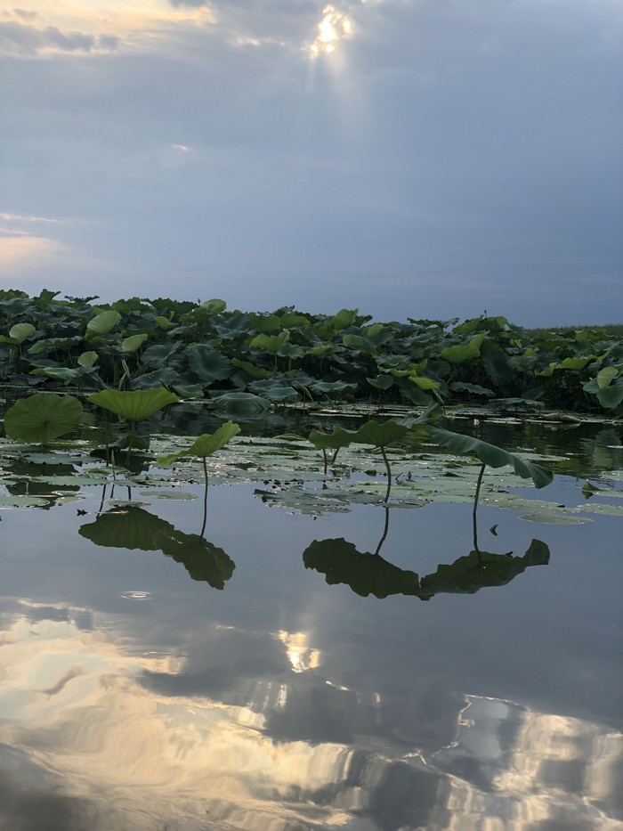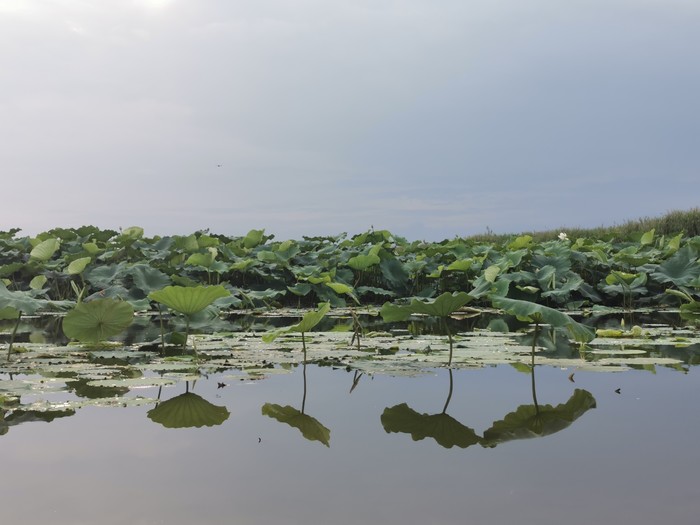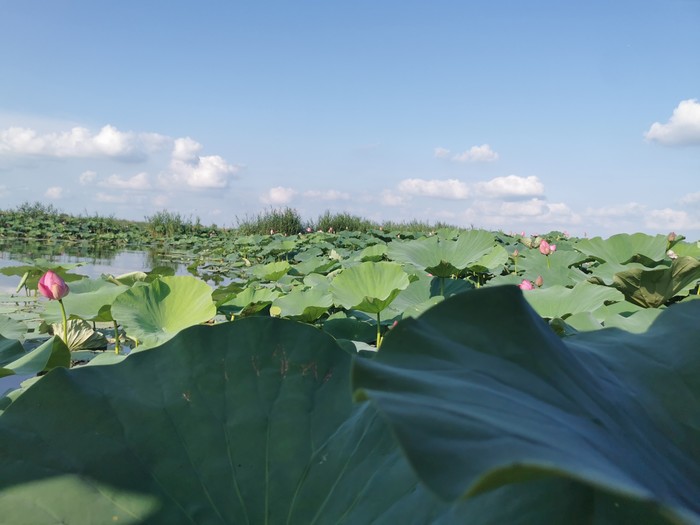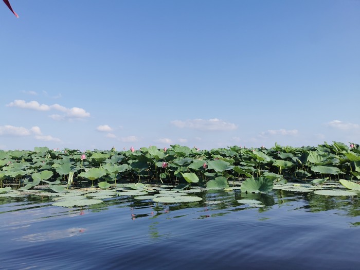 先是洱海一般的感觉,时不时飞过鸟,转过一片芦苇,映入眼帘的就是那接天莲叶无穷碧,映日荷花别样红!船开入莲花从里,我也顾不上害怕掉下去了,跑到船头开始拍照