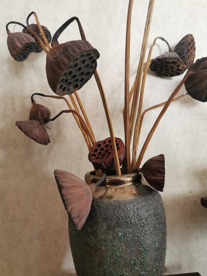 还有屋中摆的莲蓬。据说就是秋天采摘的,羡慕啊!