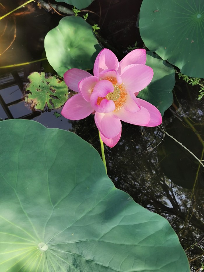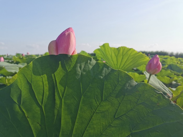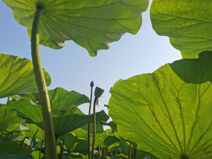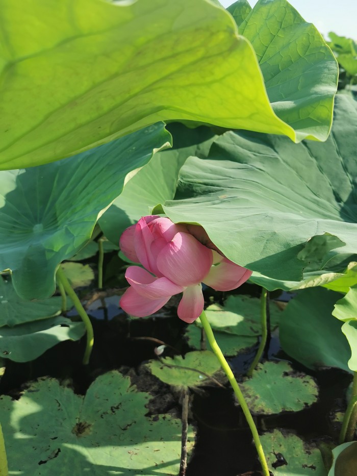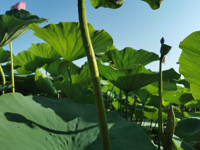我第一次钻入荷叶荷花底下拍照,好兴奋啊哈哈!朋友伸手咔嚓摘一朵,啊啊啊,还能这样?我我我……没见过+