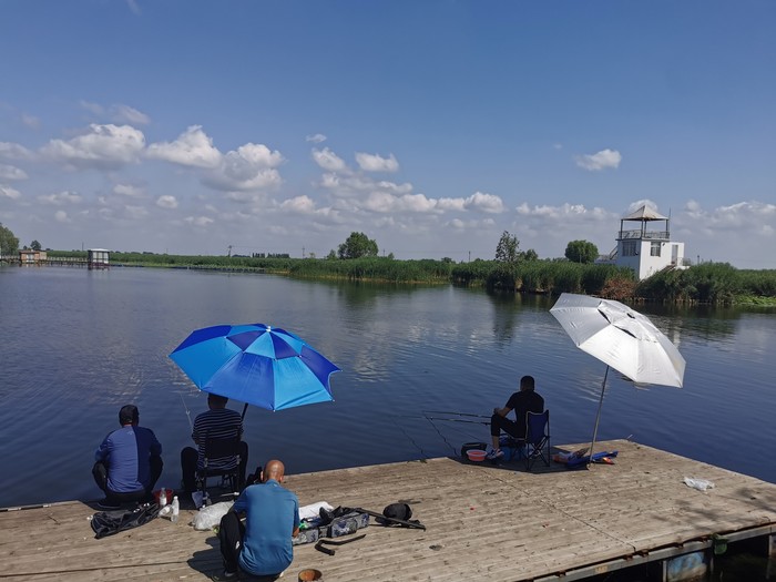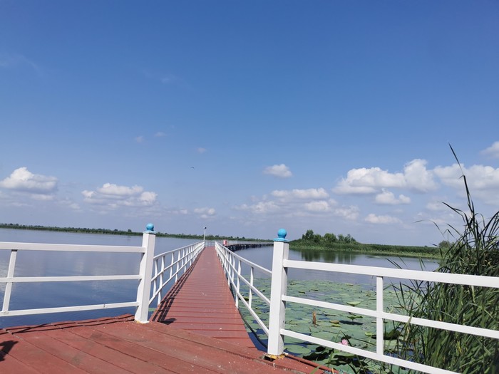 沿着廊道,我们一路惊叹今天云美景好,最适合拍照。这白色小房子是鸟观测站,入镜很是添彩,路边钓鱼的人很多,下面还有小孩子游泳,水清澈,微风徐徐。其实,我好想在这里驻扎开始,朋友们告诉我们,别急,咱们去里面那个小岛,没有人,还适合拍照。