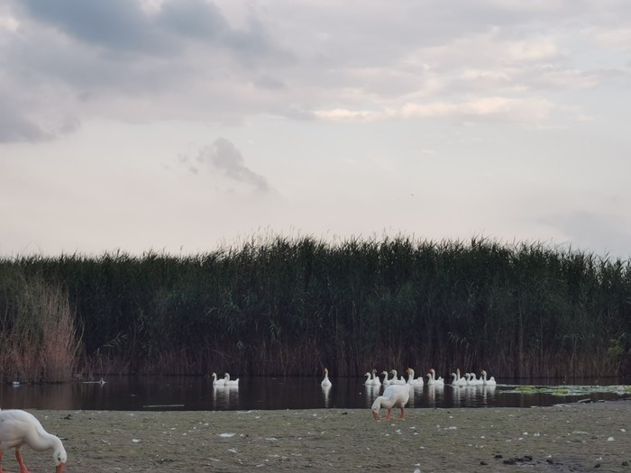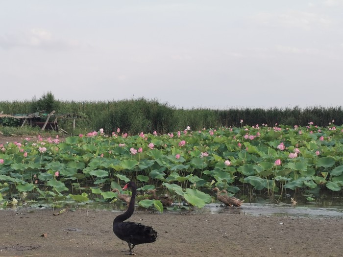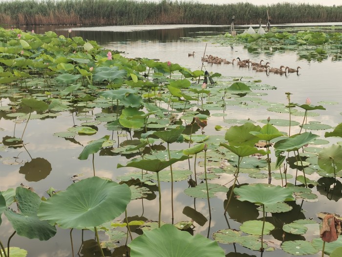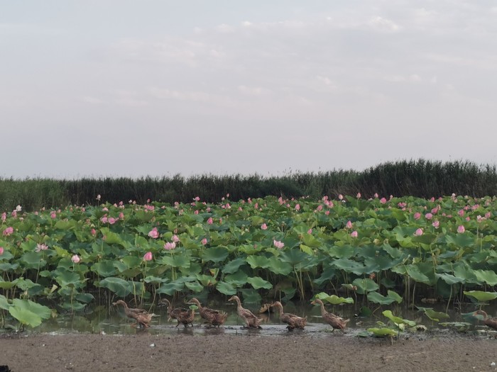 又转弯看到一片荷塘,一群鸭子游过,远处竟然有一群鹅,好想冲过去拍照。