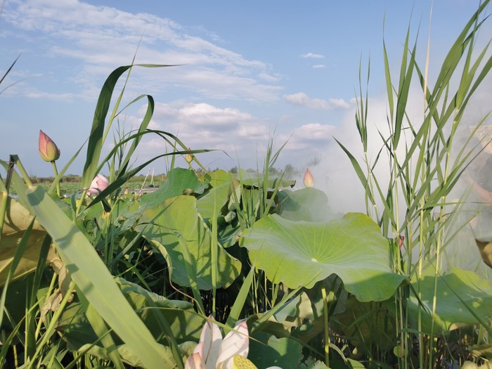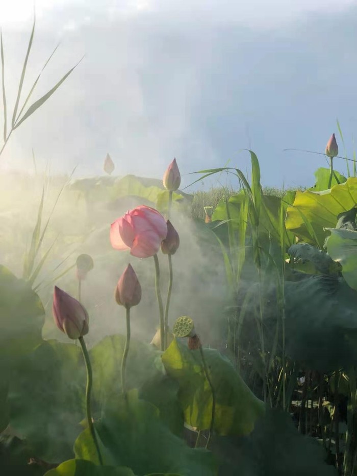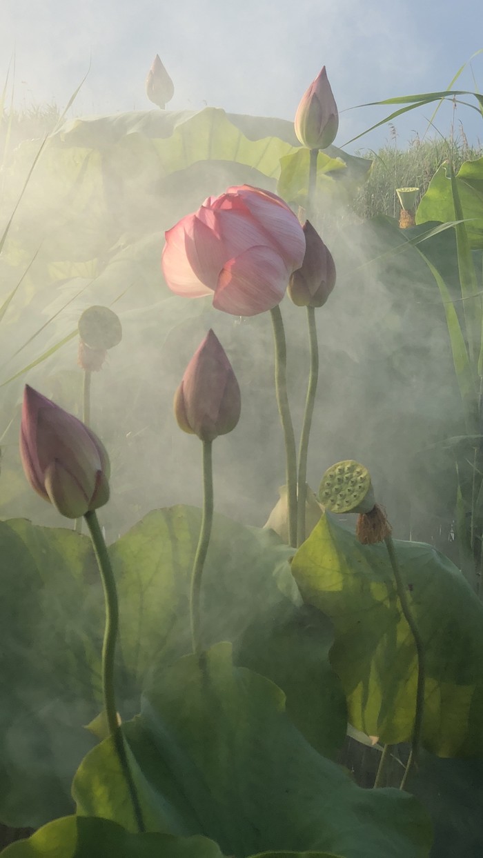 我们自己带的香,制造烟,找仙境的感觉。为了养荷,有水管是长流水的,我发现了,于是有了动静结合的大片。需要说明的是一定要穿长衣长裤,蚊子太厉害了,我身上红包已经数不过来了,而且蚊子好容易看到大餐,死也不走!喂饱了蚊子,我们又来到前面大荷塘,这时候天暗了,要下雨了感觉。