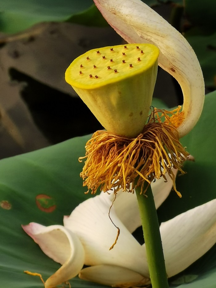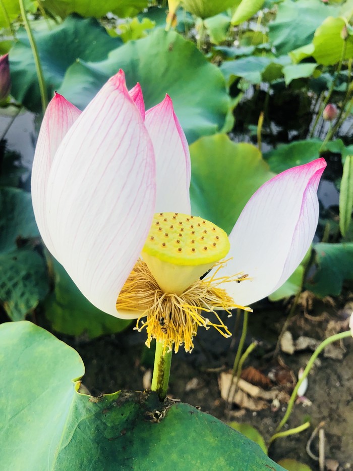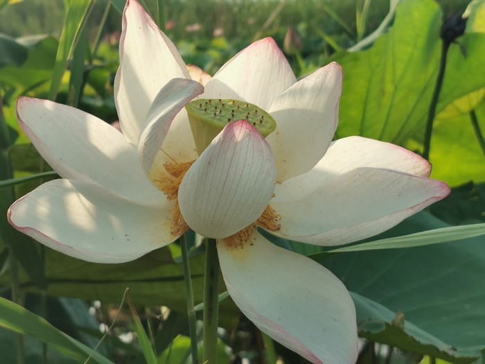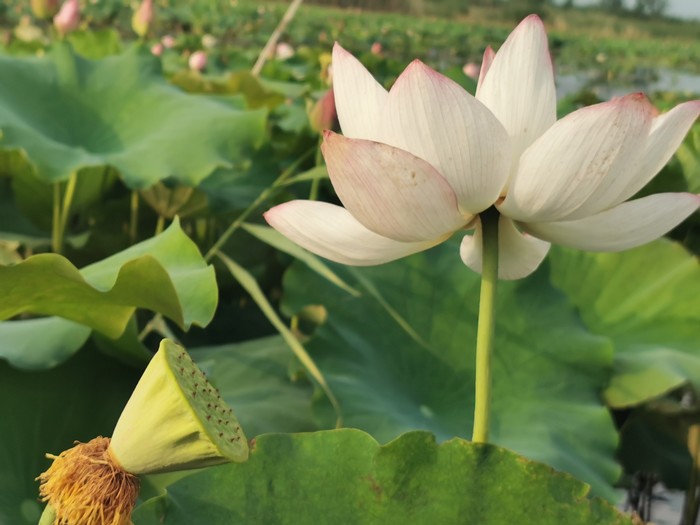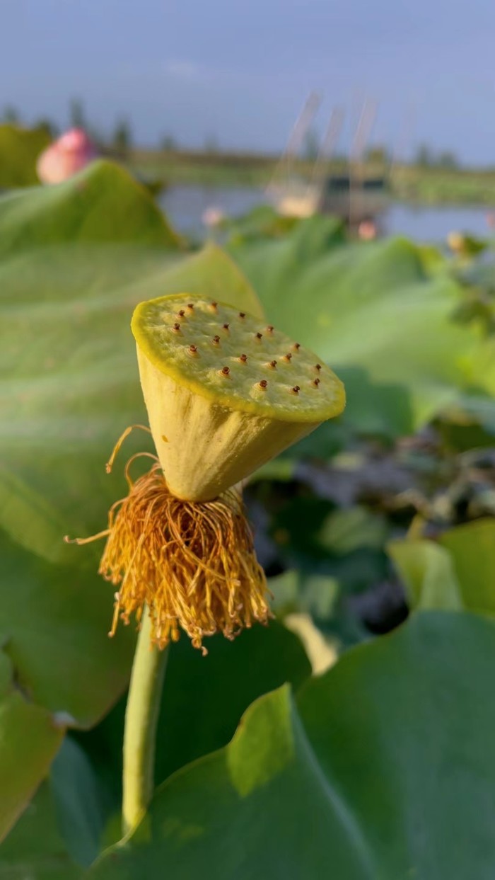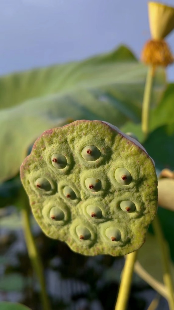 上了小岛,朋友就领我们往房子后面走,说是后面的荷塘是稀有品种,秋天了莲蓬比普通的大一倍多。
