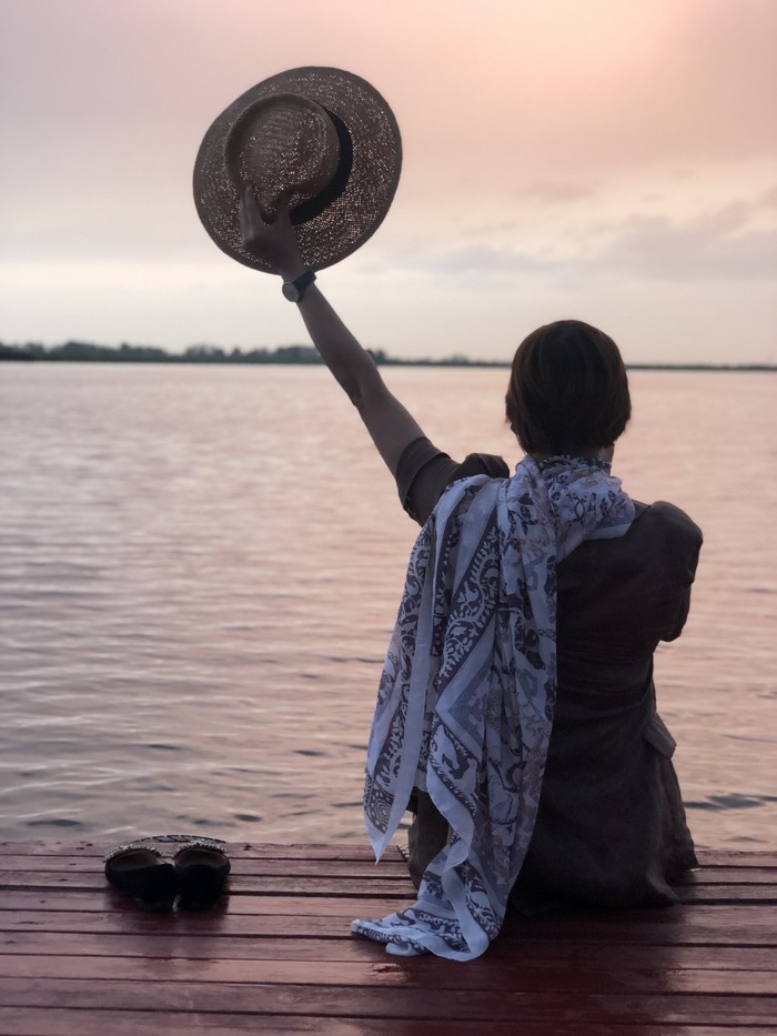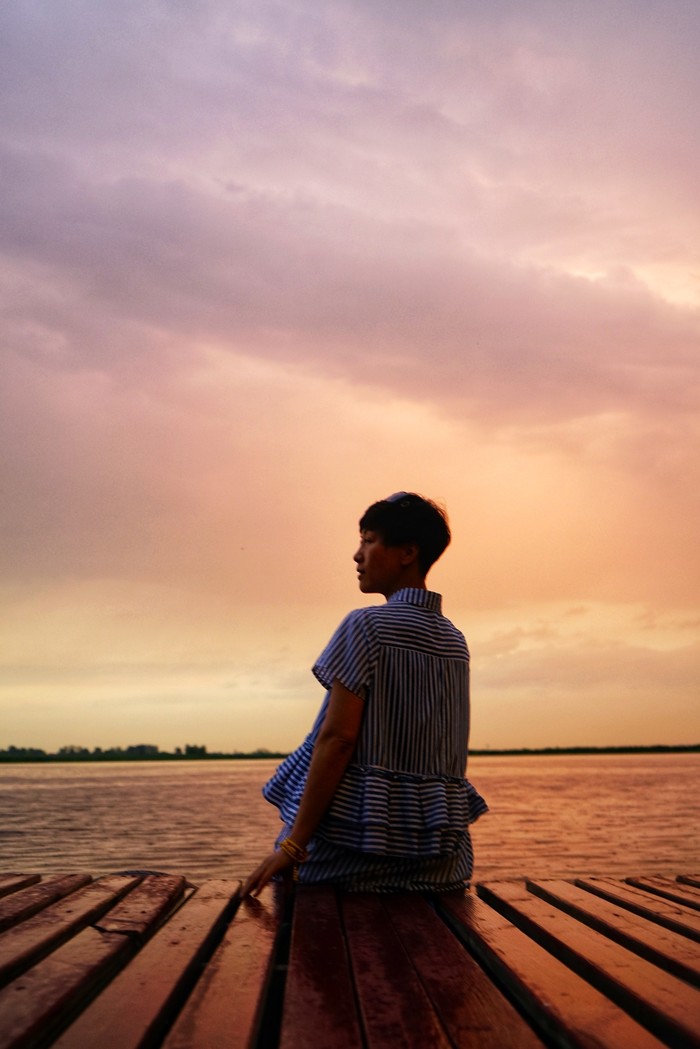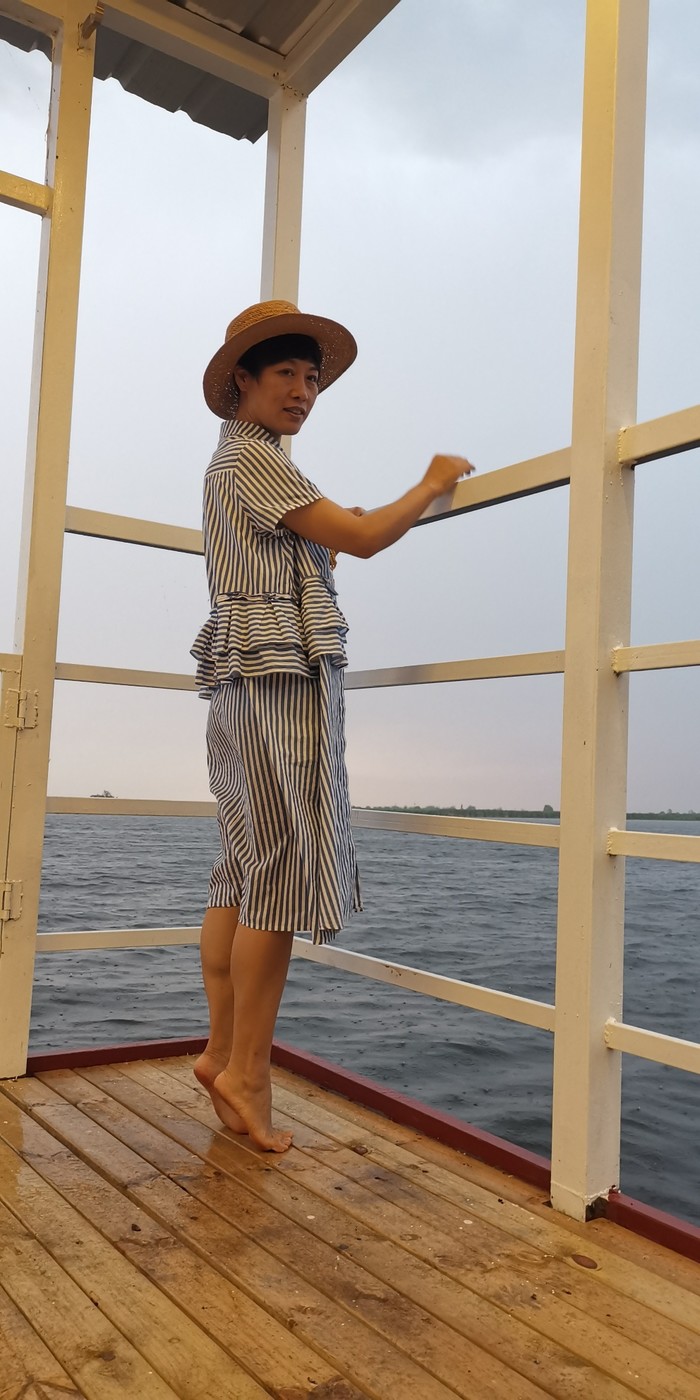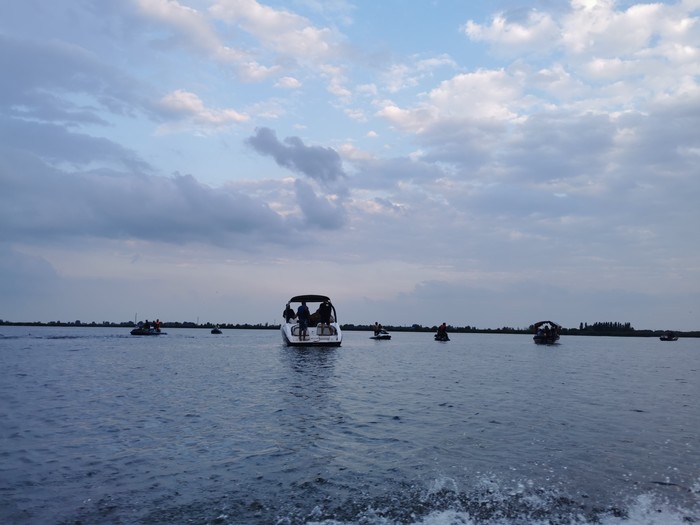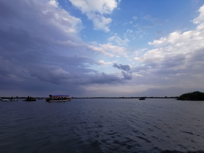 天太晚了,不得不回,恋恋不舍中我们坐船往回走。好遗憾,没摇着小木船去拍照。回去不是一条线,又有大片水域,有当地青年骑着10辆摩托艇,是赛艇,来来回回的好刺激。