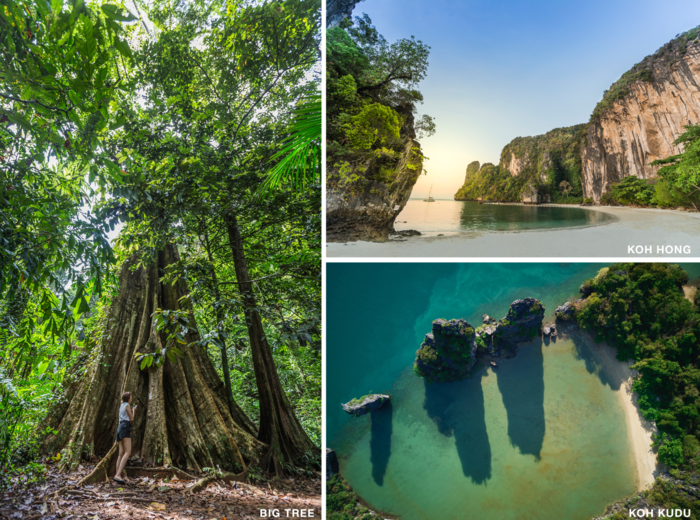 源于得天独厚的地理位置,酒店推出的海上活动多姿多彩。宾客乘坐豪华船只,能够十分便利地前往附近的岛屿进行一番探索,周围众多天堂般的美丽小岛就在附近。其中,宏岛(Koh Hong)有着惊人的美丽风景,被当地人称作“房间岛”。这座小岛被石灰岩峭壁和钟乳石洞分成了三个“房间”而得名。所谓“房间”其实就是悬崖峭壁围城的泻湖,泻湖的水不深,湖水清澈见底,水中有成群的热带鱼和美丽的珊瑚礁,十分适合游泳和浮潜。天堂岛(Koh Lao La Ding)是一个带有U型白色沙滩的小岛,岛上住有经过特许的燕窝采集者,他们全天24小时都守卫在小岛上。Koh Pak Bia岛翡翠般的海水让任何游泳爱好者都难以拒绝,离沙滩50米的海域就是浮潜区,在五颜六色的珊瑚中翱翔是一种多么令人惊叹的感觉!大瑶诺岛(LongIsland)则以奇特的风景闻名,每个沙滩都独一无二:Ao Klong Son海湾是一个被杉树包围的白色沙滩;Ao Tee Kood海湾的白色沙滩旁栽满松树;Ao Hin Kong海湾拥有热带雨林风光,这里还是穆斯林村渔民们的捕鱼之地。