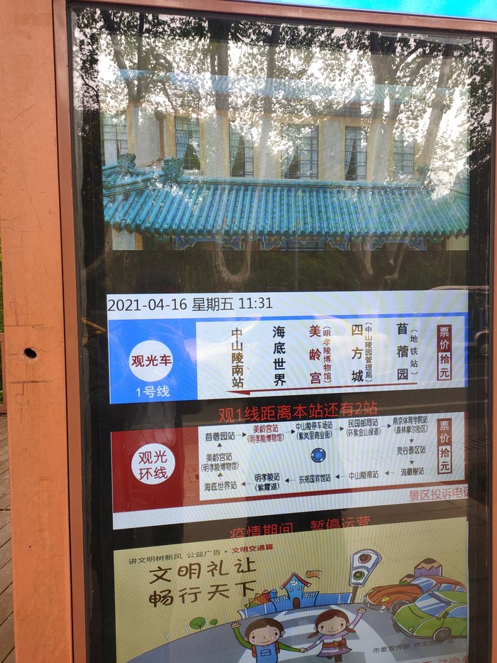 早上从大行宫站坐地铁去往苜宿园站,走几步,找到观光车坐车开始今天的行程