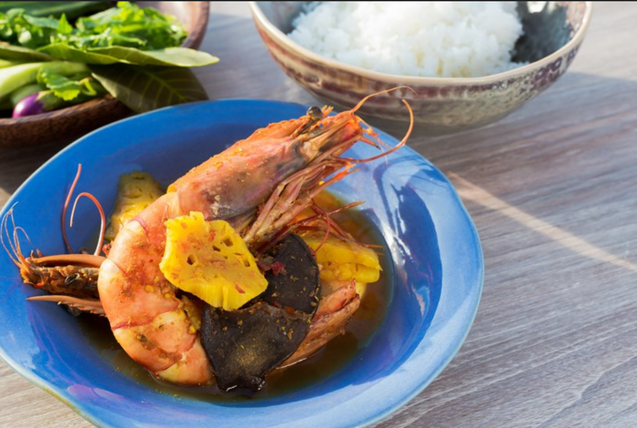 置身于如此惬意的环境中,感受着泰南海风温柔的拂面,仔细品尝起地道泰南料理,那其中多元的味道,将快速占领你的味蕾。既然是泰南风味,主打的招牌菜中“咖喱”是你必尝的特色,是用航咖喱搭配上了当地新鲜的扇贝,浸入了浓厚咖喱的扇贝滋味鲜美回辣;罗望子炖鲜虾,绝妙的搭配让Q弹细腻的虾肉带上了水果中天然的酸,口味清新开胃,营养丰富;除此之外我最爱的是烤虾,主厨自制的海鲜酱真的是超绝,鱼肉清甜、酱味辣香,这般火辣辣的舒爽让人瞬间跃进热带雨林之中,与此同时在喝上一口浓郁的泰式奶茶,心情真是好到冒泡呀!