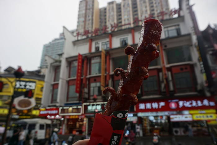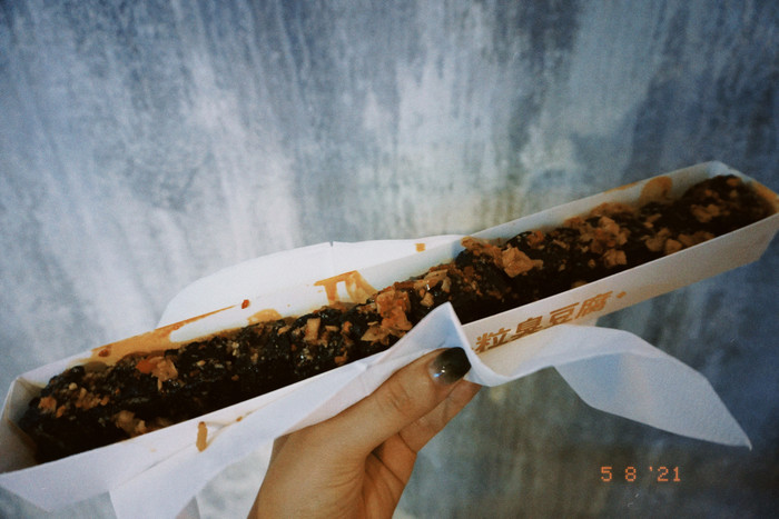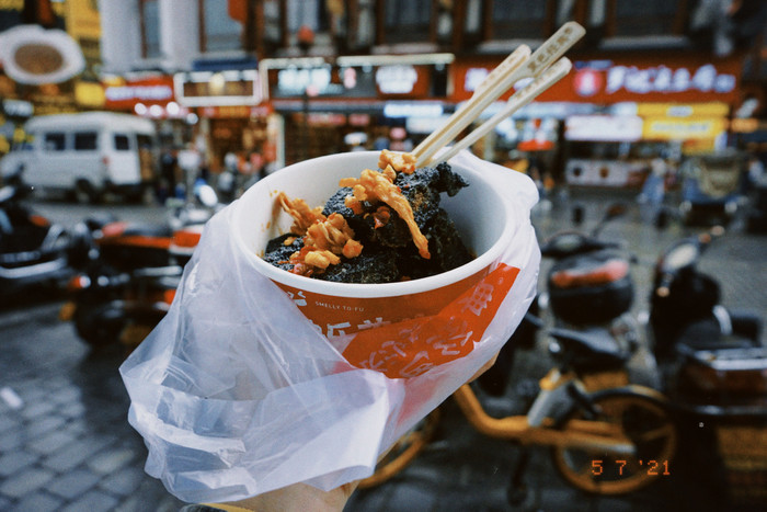 出發前小姐妹就跟我說,黑色經典的臭豆腐是真的最好吃,有打破“網紅店出品比不知名小店差”的定律。結果實踐出真知,確實是!好吃到包哥每天都買來吃!至於那個大香腸和糖油粑粑我跟包子就不會欣賞了。