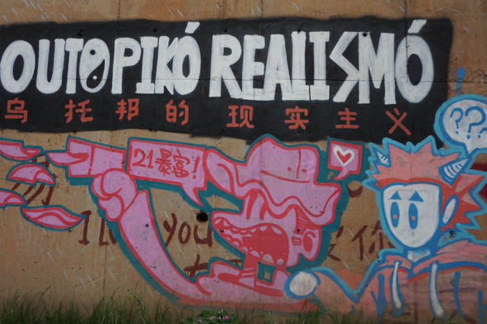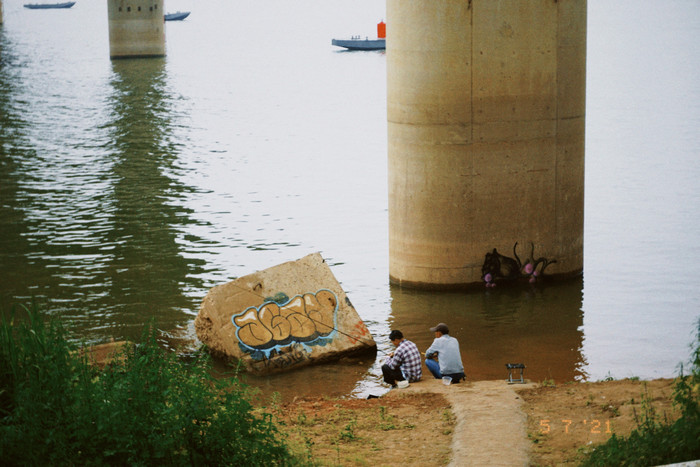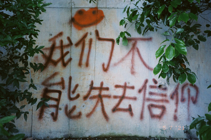 一直下著毛毛雨,幸好這面墻在橋底下,拍照不會淋濕~我們擔心後面幾天都會下雨,就想著趁毛毛雨把橘子洲也去了好了(結果這個擔憂非常多餘...)