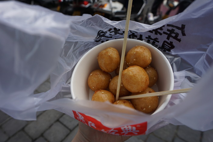 從南門出去後便是小吃街,我們買了一些吃的作為午餐。