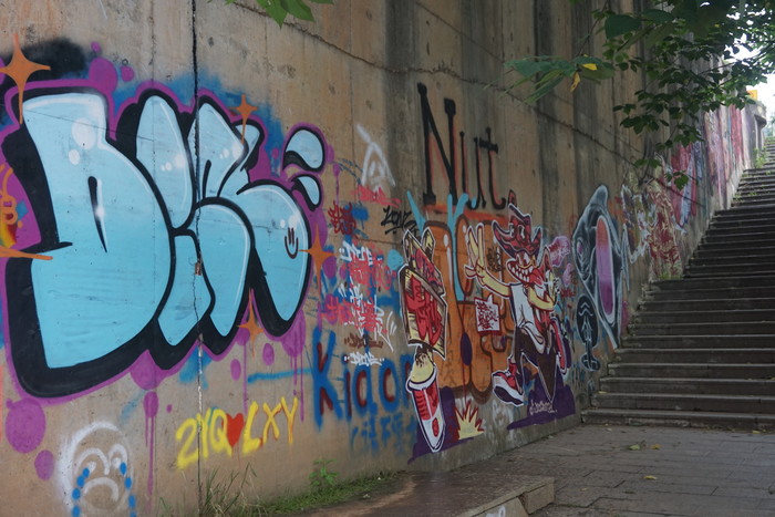 下車後往猴子石的方向走,之後我們就按照小紅書給的很詳細的標誌性建築圖找到了塗鴉墻。