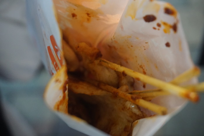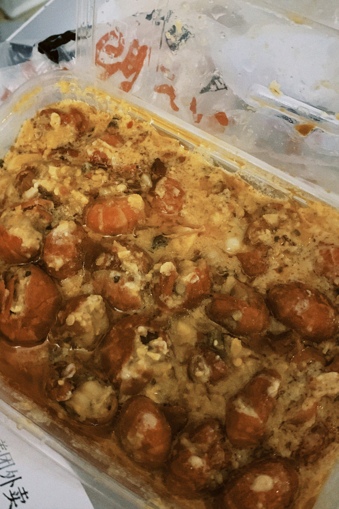 回家民宿路上我們買了一些吃的,叫了果呀呀外賣,店要等半個小時T-T。這家里脊肉硬生生把我給辣哭了,辣到我後面根本吃不下最愛的黑色經典臭豆腐,一直在洗嘴巴和流眼淚..