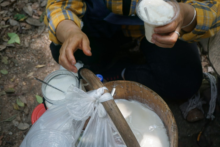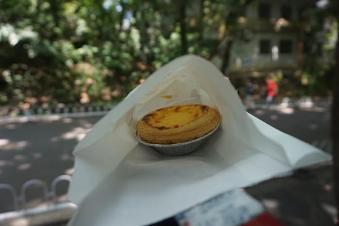 我們帶上山的乾糧是包包早上在我化妝的時候去買的墨茉點心局的麻糬和蛋撻~還蠻好吃啦