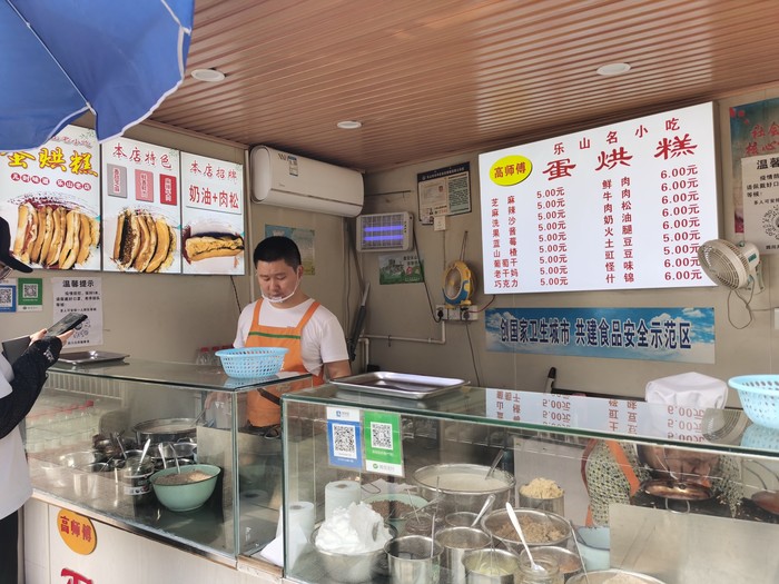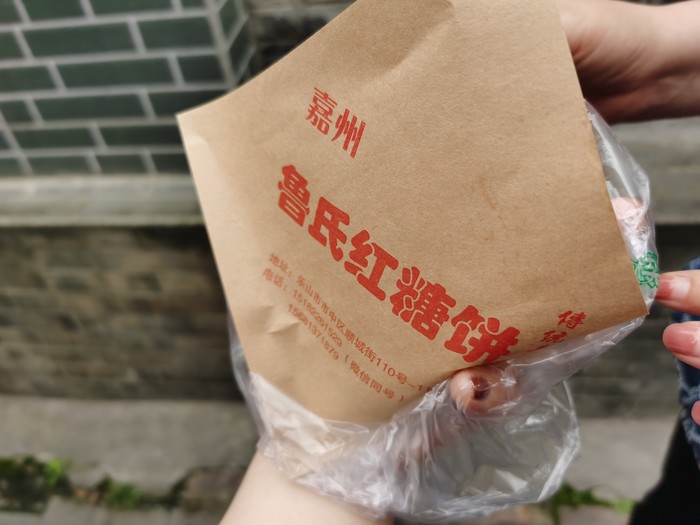 吃完烧卖,沿着滨江路散了一会步,搭了一辆电动人力车,游览了一下乐山老城区。偶遇鲁氏传统红糖饼,小心烫嘴呦。