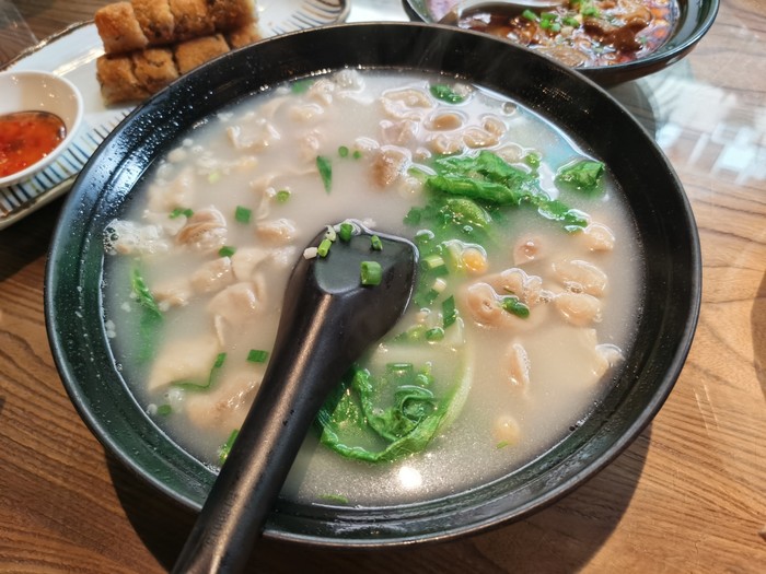 肥肠处理的非常专业,几个菜都值得推荐。汤的内容有点足,小份份量稍稍有点少,除了肥肠豌豆还有青菜,不油腻。