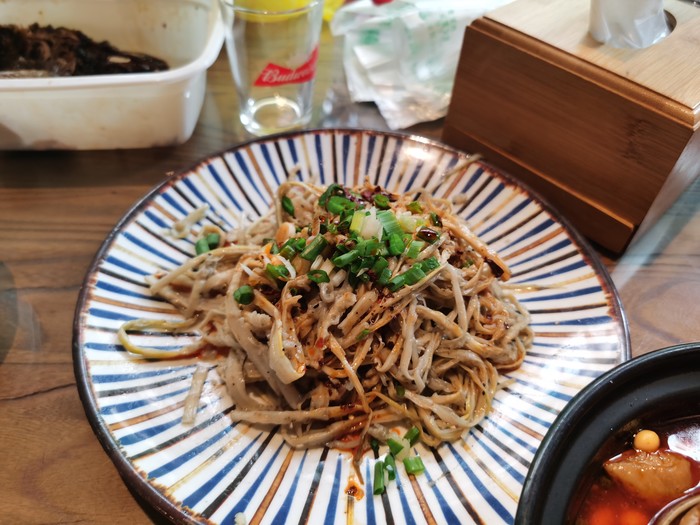 伴着淅淅沥沥的雨声醒来,还好天公作美,等洗漱完毕从酒店出来,雨停了。雨后清新的空气让人心旷神怡。第一站,海汇源老烧卖店,鲜肉烧卖味道确实很棒,蘸烧卖配的蘸碟的辣椒鲜香不辣,银丝面中规中矩。早上的烧卖店排很长的队,虽然服务态度赶不上以前了,但是胜在味道依然不错。店家考虑很周到,有专门提供给大家打包的烧卖,只有7、8成熟,回家按照要求洒点水在烧卖顶上再大火蒸8分钟再凉2-3分钟就可以完美复刻在店里吃到的味道。