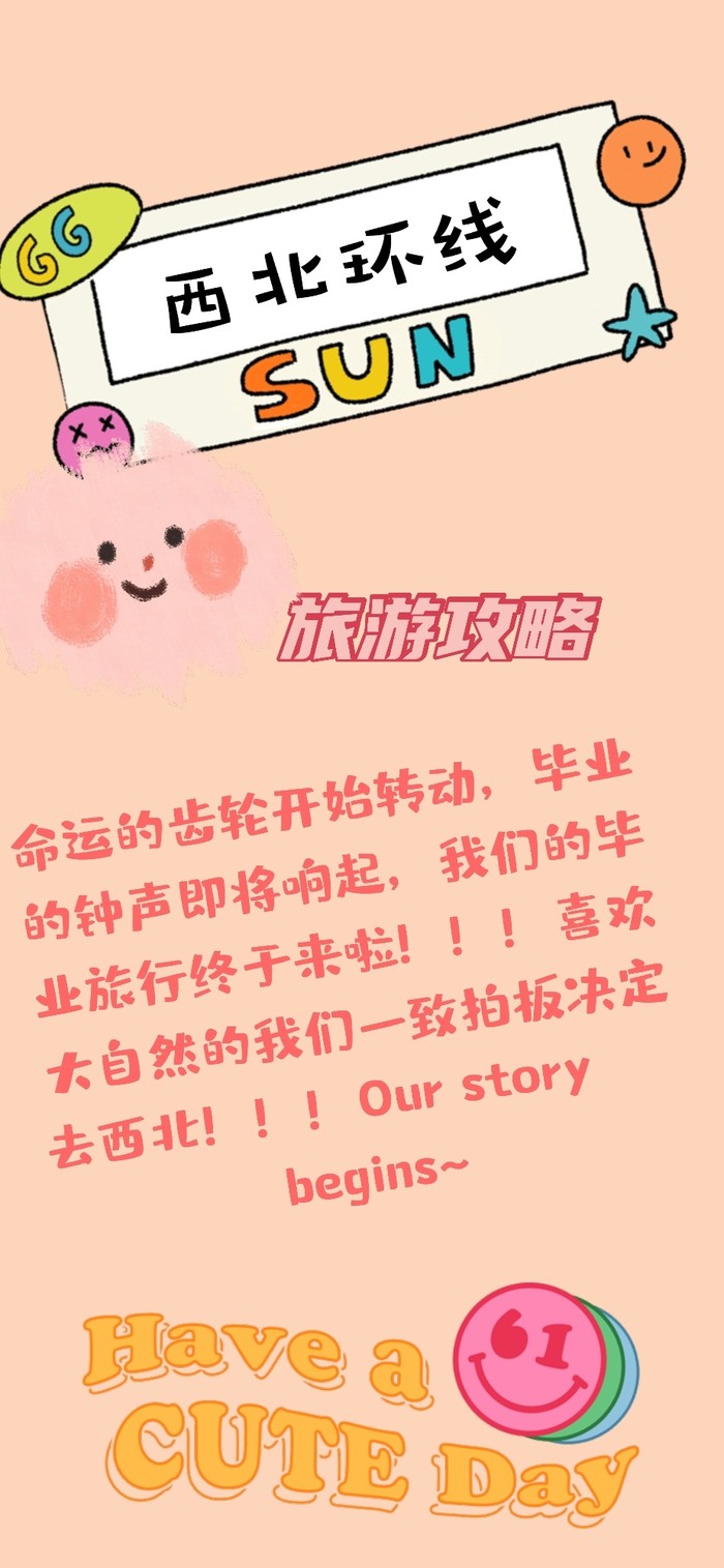心心念念的毕业旅行终于来啦!我们这次选择了西北大环线,整个旅程非常开心,十分感谢小马哥对我们全程的帮助和包容,有缘分我们还会再见面哒!!!