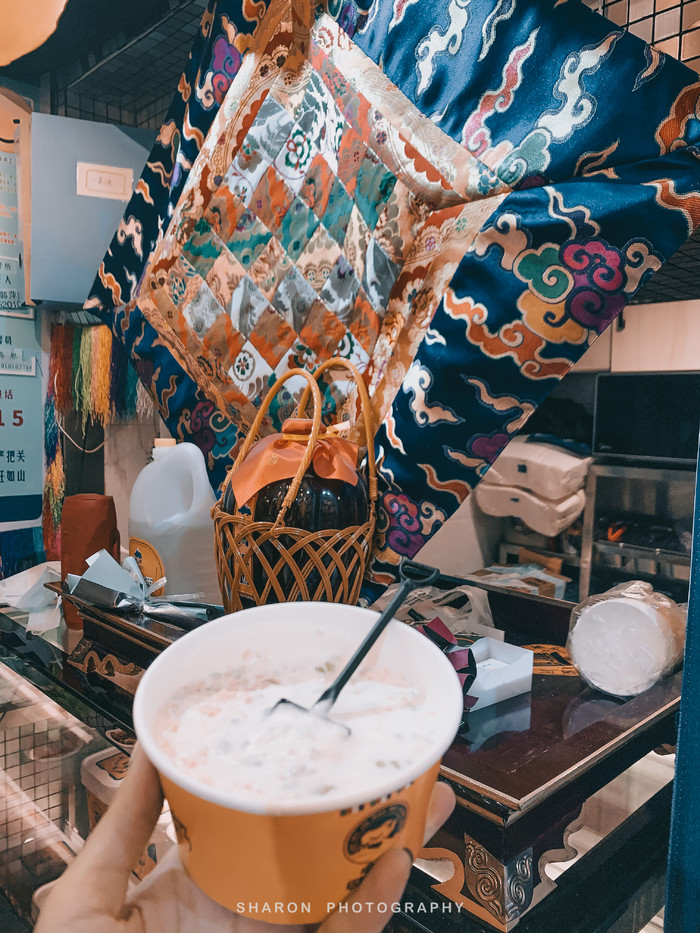 犹豫了半天,选择了推荐的[46号]杂碎汤摊,一份伴羊肚和一碗杂碎汤,热乎乎地美味极了。随后逛到了[老牟家牦牛酸奶],这家的酸奶简直绝了,且不说浓香不腻,还有各种口味和配料可加,纠结了下最终选择了“拉姆”里面加了麻仁、青稞、椰果,还额外加了嘎嘣脆的奶皮子,简直不要太好吃。