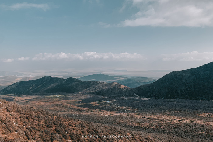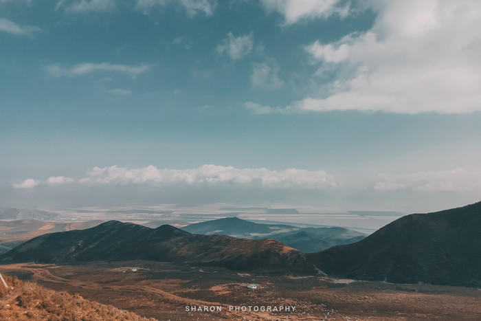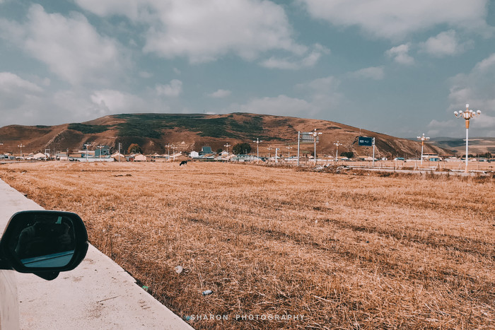 西宁出发,沿途经过了达坂山观景台,可以从高处将漫山的油菜花地收入眼中,然而,10月的天气这能看到漫山遍野的泛黄的青草地,只能闭眼想象了。所以要看门源花海一定要7-8月前往观赏,不然的话就只能吹冷风了。
